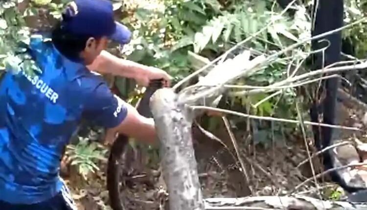 இதையடுத்து பாம்பு கையாளுதலில் சிறப்புப் பயிற்சி பெற்ற தேக்கடி பெரியார் புலிகள் காப்பகத்தின் பாம்பு பிடி வீரர்கள் தலைமையிலான வனத்துறையினர் அந்தப் பகுதியில் தீவிர கண்காணிப்பு பணியில் ஈடுபட்டனர். இதைத் தொடர்ந்து இன்று அதே பகுதியில் கொடிய விஷமுள்ள ராஜ நாகம் இருப்பது தெரியவந்தது. இதையடுத்து அபினேஷ், பைஜ{ மற்றும் அருண் ஆகிய பாம்பு பிடி வீரர்கள் ராஜ நாகத்தை உயிரோடு பிடித்தனர்.