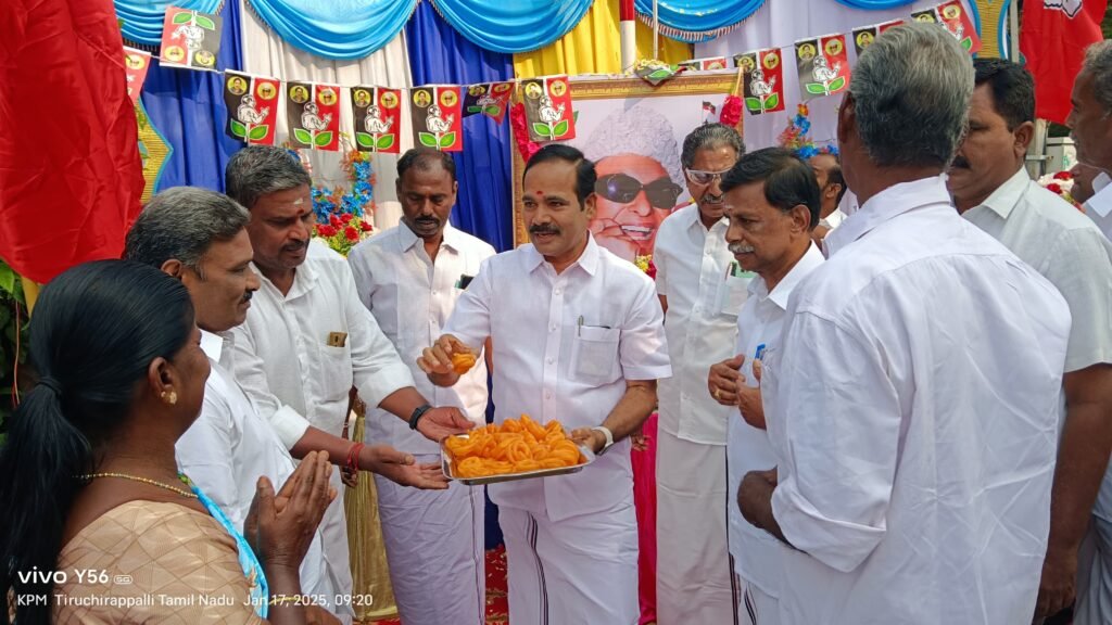 எம்ஜிஆரின் பிறந்த நாளை முன்னிட்டு திருச்சி அதிமுக தெற்கு மாவட்டம் சார்பில் 39 ஆவது வட்டக் கழகம் உள்பட 17 இடங்களில் புதிய கொடிமரங்களில் மாவட்ட செயலாளர் குமார் கொடியேற்றி இனிப்புகள் வழங்கினார் .