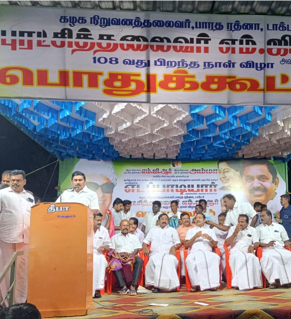 அஇஅதிமுக பொதுச் செயலாளர், சட்டமன்ற எதிர்க்கட்சித் தலைவர், எடப்பாடி பழனிச்சாமி அவர்களின் ஆணைக்கிணங்க. திருச்சி புறநகர் தெற்கு மாவட்டம் சார்பில் மணப்பாறை சட்டமன்ற தொகுதியில் அதிமுக நிறுவனத் தலைவர், டாக்டர் எம்ஜிஆர் அவர்களின் 108 வது பிறந்தநாள் விழா பொதுக்கூட்டம் நேற்று மணப்பாறை, வளநாடு கைகாட்டியில் நடைபெற்றது.