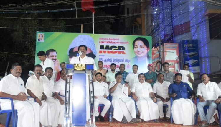 திருச்சி பாலக்கரை எடத்தெரு அண்ணா சிலை அருகில் திருச்சி மாநகர் மாவட்ட அ.தி.மு.க. சார்பில் எம்.ஜி.ஆரின் 108-வது பிறந்த நாள் விழா பொதுக்கூட்டம் நடைபெற்றது. மாநகர் மாவட்ட கழக அவைத்தலைவர் அய்யப்பன் தலைமை தாங்கினார்.