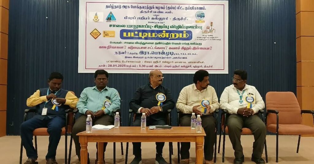 திருச்சி மாவட்டத்தில் தமிழ்நாடு அரசு போக்குவரத்துக் கழகம் (கும்பகோணம்) லிட்., கும்பகோணம் திருச்சி மண்டலம், மற்றும் பிஷப் ஹீபர் கல்லூரி (தன்னாட்சி) இணைந்து நடத்திய சாலைப் பாதுகாப்பு விழிப்புணர்வுப் பட்டிமன்றம் நிர்வாக இயக்குநர், இரா. பொன்முடி தலைமையில நடைபெற்றது.