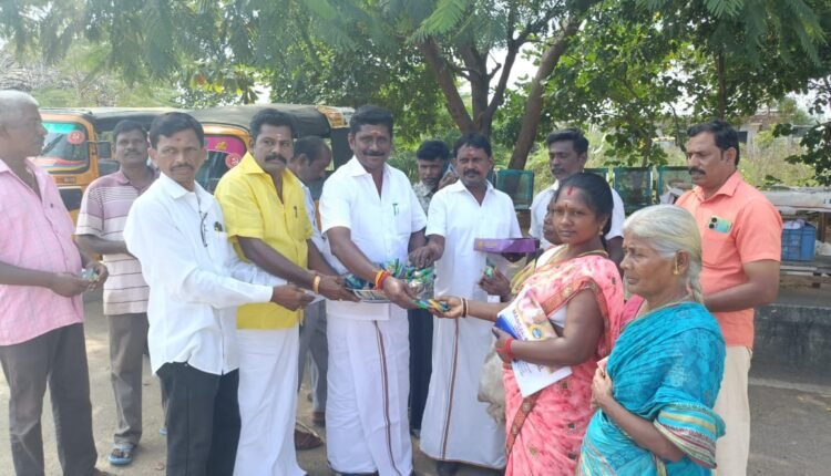தேமுதிக மாவட்ட செயலாளர் மாத்தூர் ஊராட்சி மன்ற தலைவர் ஆர்.பாரதிதாசன் தேமுதிக கட்சிக்கொடியேற்றி இனிப்புகள் வழங்கினார்.