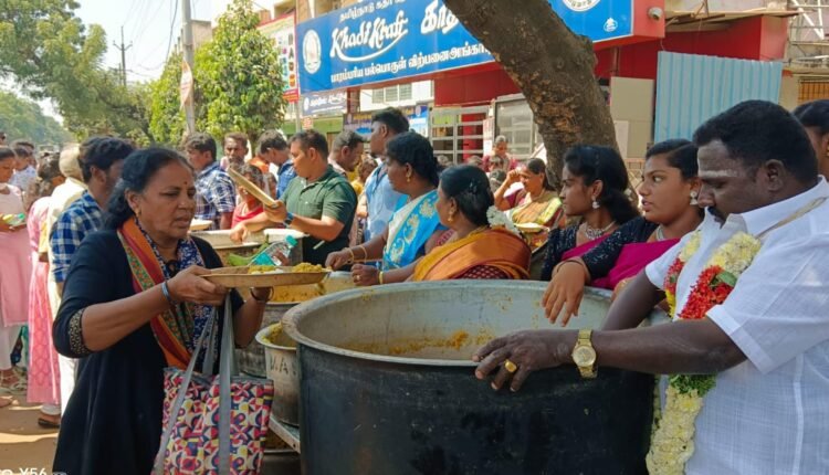 தைப்பூச திருவிழாவை முன்னிட்டு திருச்சி வழி விடு வேல்முருகன் கோயிலில் 8ம் ஆண்டாக அன்னதானம் வழங்கிய கொட்டப்பட்டு அபிராமி வெல்டிங் ஒர்க்ஸ் நிறுவனத்தினர்