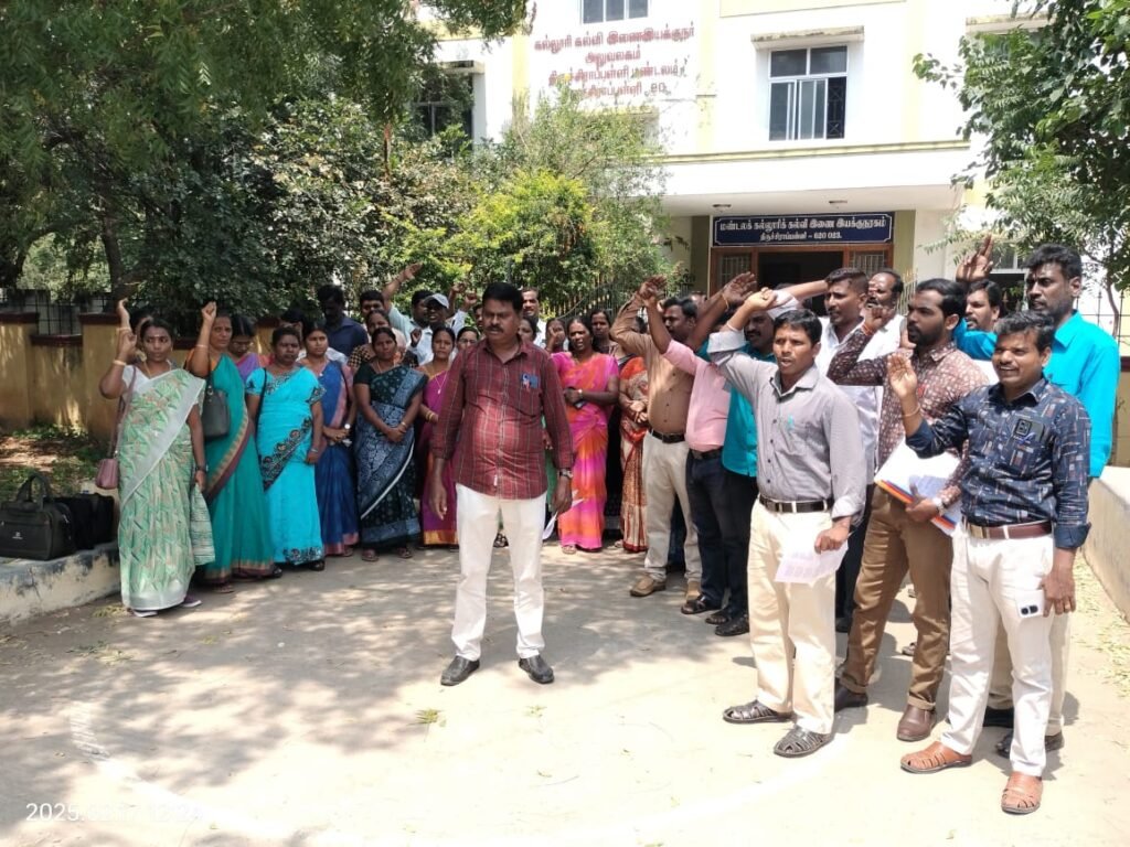 தமிழக அரசு நீதிமன்ற உத்தரவை நடைமுறைப்படுத்த வேண்டி திருச்சியில் அரசு கௌரவ விரிவுரையாளர்கள் இன்று ஆர்ப்பாட்டம்.