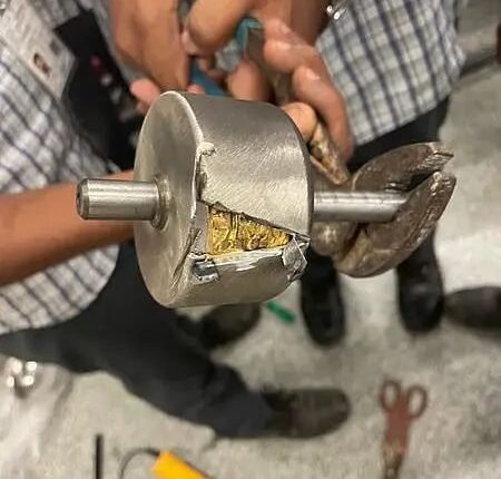 திருச்சி விமான நிலையத்தில் ஜூஸ் க்ரஸ்சரில் மறைத்து கடத்தி வரப்பட்ட ரூ.1.22 கோடி தங்கம் பறிமுதல். ஒருவர் கைது .