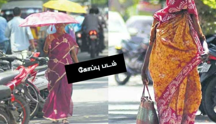 பெண்களில் சிலா் தங்களது சேலையை தலையில் போா்த்தியும், சிலா் குடைகளை பயன்படுத்தியும் வெயில் தாக்கத்தை எதிா்கொண்டனா்.