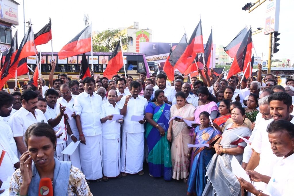 கே என் சேகரன் பகுதி செயலாளர்கள் மோகன் , நீலமேகம், தர்மராஜ், பாபு விஜயகுமார், ராஜ்முகம்மது, சிவக்குமார் மணிவேல் மற்றும் மாவட்ட மாநகர பகுதி கழக நிர்வாகி அணிகளின் அமைப்பாளர்கள் கலந்து கொண்டு ஒன்றிய அரசுக்கு எதிராக கோஷம் எழுப்பினர்