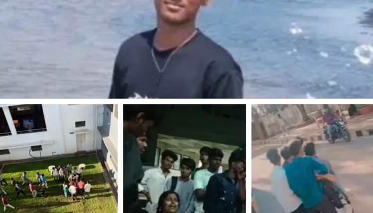இந்நிலையில் சக மாணவர்கள் முன்னிலையில் நடந்த இந்த சம்பவத்தால் மனமுடைந்த தரணிதரன் திடீரென்று கல்லூரியின் 4வது மாடியில் இருந்து கீழே குதித்து தற்கொலைக்கு முயன்றார். இந்த சம்பவத்தில் உடலில் பலத்த காயம் அடைந்த மாணவனை சக மாணவர்கள் மீட்டு இருங்களூரில் உள்ள தனியார் மருத்துவக் கல்லூரி மருத்துவமனைக்கு சிகிச்சைக்காக அனுப்பி வைத்தனர்.அங்கு தீவிர சிகிச்சை பிரிவில் மாணவன் அனுமதிக்கப்பட்டு சிகிச்சை பெற்றார்.