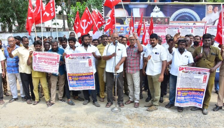 ஆர்ப்பாட்டத்திற்கு சாலை போக்குவரத்து தொழிலாளர் சங்க மாவட்ட செயலாளர் சந்திரன் தலைமை வகித்தார் ஆர்ப்பாட்டத்தை விளக்கி சிஐடியூ மாநகர் மாவட்ட செயலாளர் ரெங்கராஜன், மாவட்ட தலைவர் சீனிவாசன், அரசு விரைவு போக்குவரத்து கழக அருள், சாலை போக்குவரத்து தொழிலாளர் சங்க சுரேஷ், அரசு போக்குவரத்து கழக கருணாநிதி, ஆட்டோ சங்க சார்லஸ், வெற்றிவேல் ஆகியோர் பேசினர்.