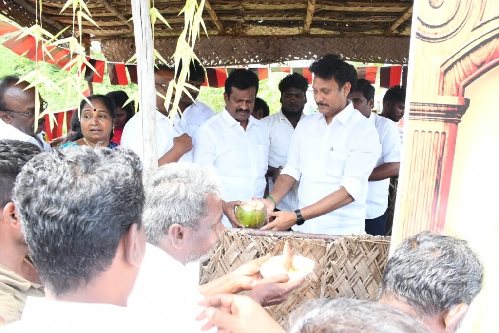 திருச்சி திமுக தெற்கு மாவட்டம் சார்பில் நீர் மோர் பந்தல் தெற்கு மாவட்ட செயலாளர், பள்ளிக்கல்வித்துறை அமைச்சர் வருமான மகேஷ் பொய்யாமொழி திறந்து வைத்தார் .