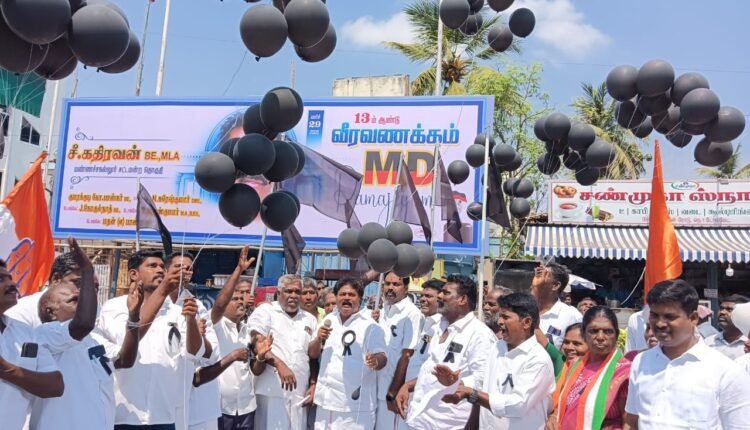 திருச்சி வடக்கு மாவட்ட காங்கிரஸ் கட்சி சார்பில் கருப்பு பலூன் பறக்கவிட்டு கருப்பு கொடி போராட்டம் நடைபெற்றது .