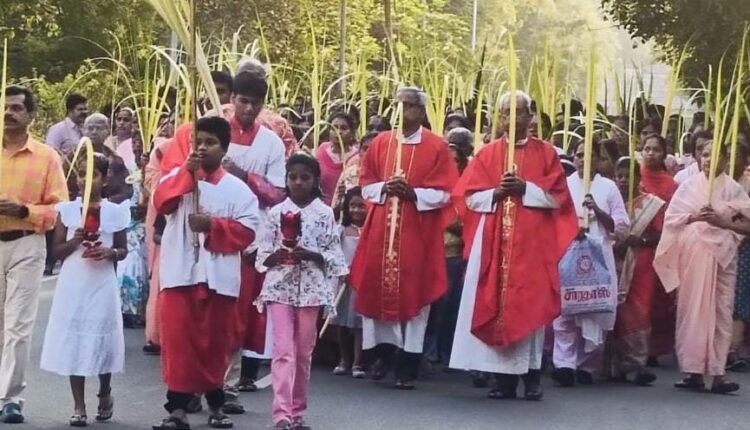 ஓசானா பாடல்கள் பாடி கிறிஸ்தவர்கள் ஊர்வலமாக சென்றனர்.