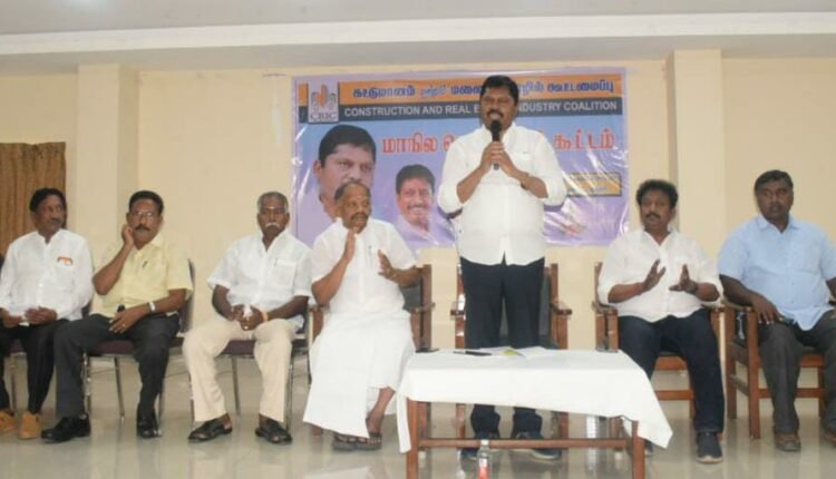 எம்.சாண்ட் விலை உயர்வை தமிழக அரசு குறைக்க வேண்டும் உள்ளிட்ட கோரிக்கைகளை வலியுறுத்தி
