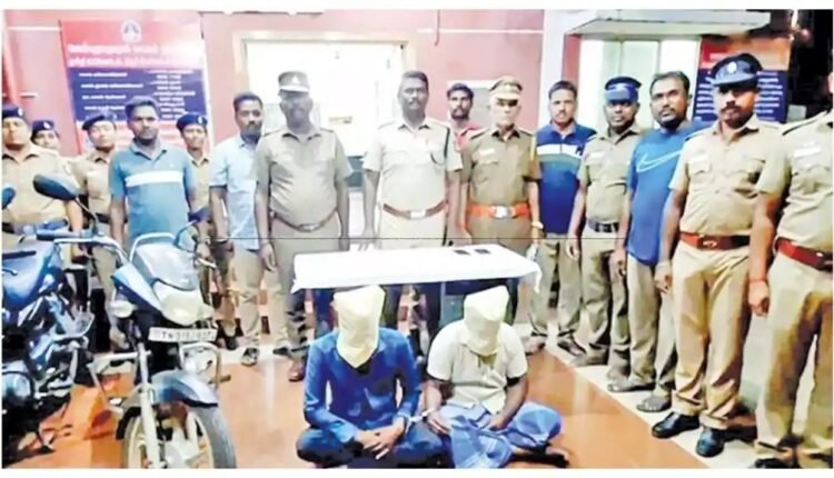 இதனால் கொள்ளையர்களை கண்டுபிடிக்க போலீசார் தனிப்படை அமைத்து தீவிரமாக தேடி வந்தனர். இந்த நிலையில் கண்ணனூர் பாளையம் அருகில் போலீசார் வாகன சோதனை நடத்தினர். அப்போது சந்தேகப்படும்படியாக இருசக்கர வாகனத்தில் வந்த 2 பேரிடம் போலீசார் விசாரித்த போது, அவர்கள் அரியலூர் மாவட்டத்தை சேர்ந்த தமிழ் பாரதி( வயது 22), திருச்சியை சேர்ந்த சரவணன்( வயது 44) என கூறினர்.
