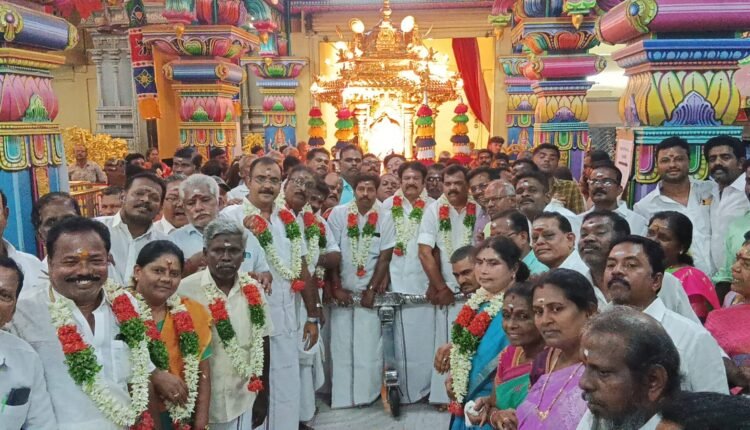 இந்நிகழ்வில் மாநகர் மாவட்ட செயலாளரும், முன்னாள் துணை மேயருமான ஜெ.சீனிவாசன் தங்கத்தேர் இழுத்து, அன்னதானத்தை தொடங்கி வைத்தார்.அமைப்புச் செயலாளர் டி.ரத்தினவேல் முன்னிலை வகித்தார்.