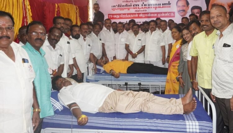 அதிமுக பொதுச் செயலாளர் எடப்பாடி பழனிசாமியின் 71வது பிறந்த நாளையொட்டி தகவல் தொழில்நுட்ப பிரிவு, அண்ணா தொழிற்சங்க பேரவை சார்பில் ரத்ததான முகாம்
