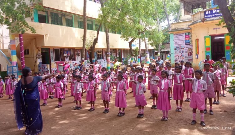 அந்த வகையில் இன்று திருச்சி பொன்மலைப்பட்டி செயின்ட் மேரிஸ் மழலையர் மற்றும் துவக்க பள்ளியில் குழந்தை தொழிலாளர் எதிர்ப்பு குறித்த விழிப்புணர்வு உறுதிமொழி ஏற்கப்பட்டது .