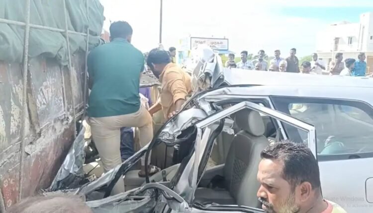 அப்போது கார் எட்டயபுரம் அருகே மேலக்கரந்தை அருகே தூத்துக்குடி – மதுரை நெடுஞ்சாலையில் வந்துக்கொண்டிருந்த போது தூத்துக்குடியில் இருந்து ஜிப்சம் ஏற்றிக்கொண்டு அரியலூர் நோக்கி முன்னால் சென்றுக்கொண்டிருந்த லாரி மீது கார் மோதி விபத்துக்குள்ளானது.