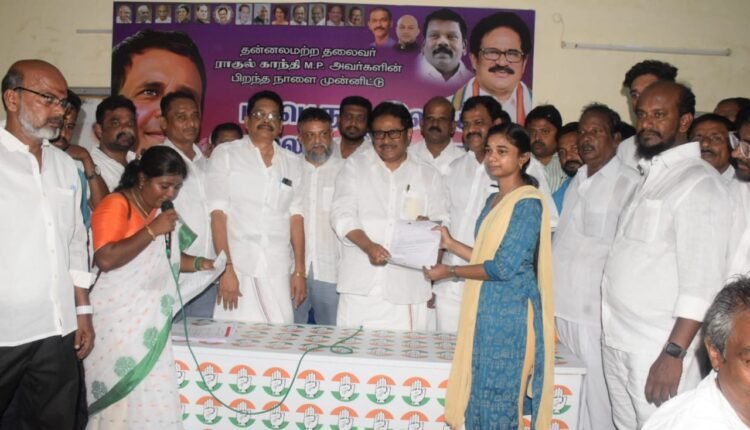திருச்சி மாநகர் மாவட்ட காங்கிரஸ் கமிட்டி சார்பில் பாராளுமன்ற எதிர்க்கட்சித் தலைவர் ராகுல் காந்தி எம்.பி. பிறந்த நாளை முன்னிட்டு அருணாச்சல மன்றத்தில் தனியார் துறை வேலைவாய்ப்பு முகாம் மாவட்ட தலைவர் கவுன்சிலர் எல். ரெக்ஸ் தலைமையில் இன்று நடந்தது. தெற்கு மாவட்ட தலைவர்