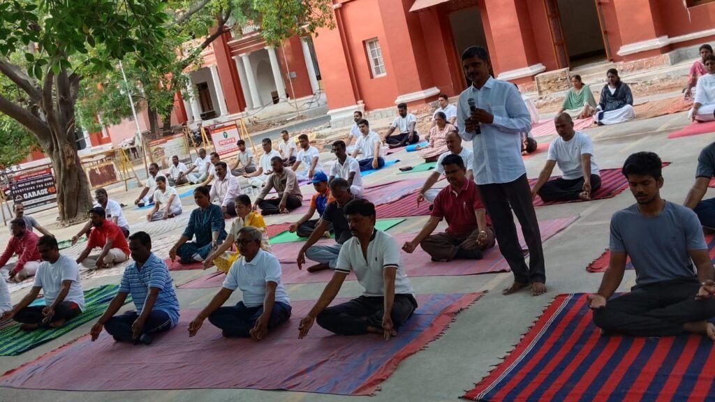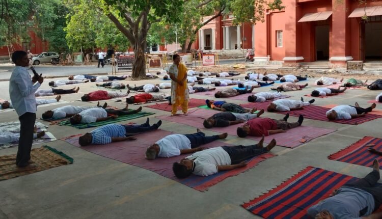 திருச்சிராப்பள்ளி நீதிமன்ற வளாகத்தில் உலக யோகா தினம் கொண்டாட்டம்.