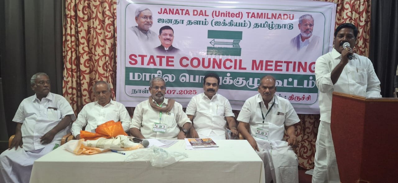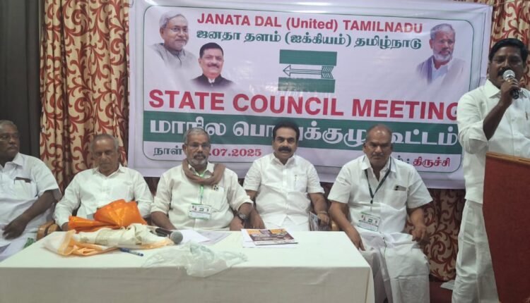 தமிழகத்தில் வரும் 2026 தேர்தலில் 120 க்கும் மேற்பட்ட தொகுதிகளில் ஐக்கிய ஜனதா தளம் போட்டி திருச்சியில் இன்று நடைபெற்ற மாநில பொதுக்குழு கூட்டத்தில் தீர்மானம்