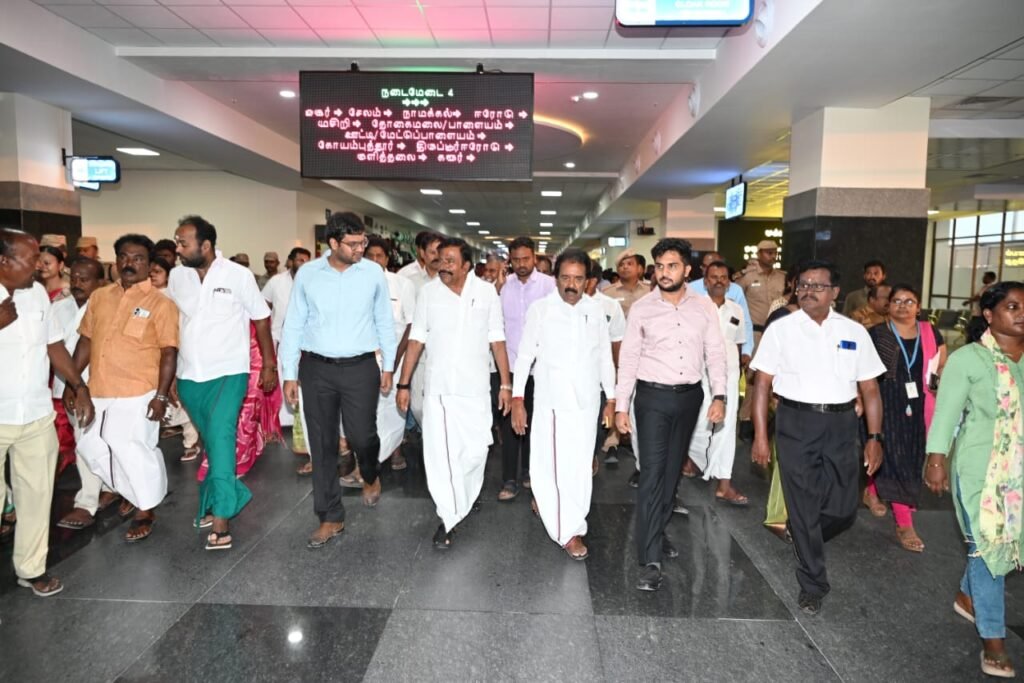 திருச்சி பஞ்சப்பூரில் இருந்து பேருந்து சேவையை தொடங்கி வைத்த அமைச்சர் நேரு. எந்தெந்த ஊருக்கு எந்தெந்த வழித்தடங்கள் விபரம்.