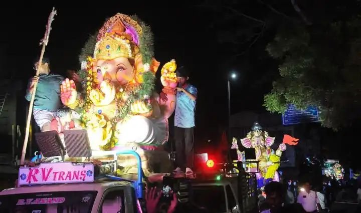 விநாயகா் சதுா்த்தியன்று பிரதிஷ்டை செய்யப்பட்ட சிலைகள் நேற்று வெள்ளிக்கிழமை மாலை முதல் ஊா்வலமாக எடுத்துச் செல்லப்பட்டு, திருச்சி காவிரி ஆற்றில் கரைக்கப்பட்டது.