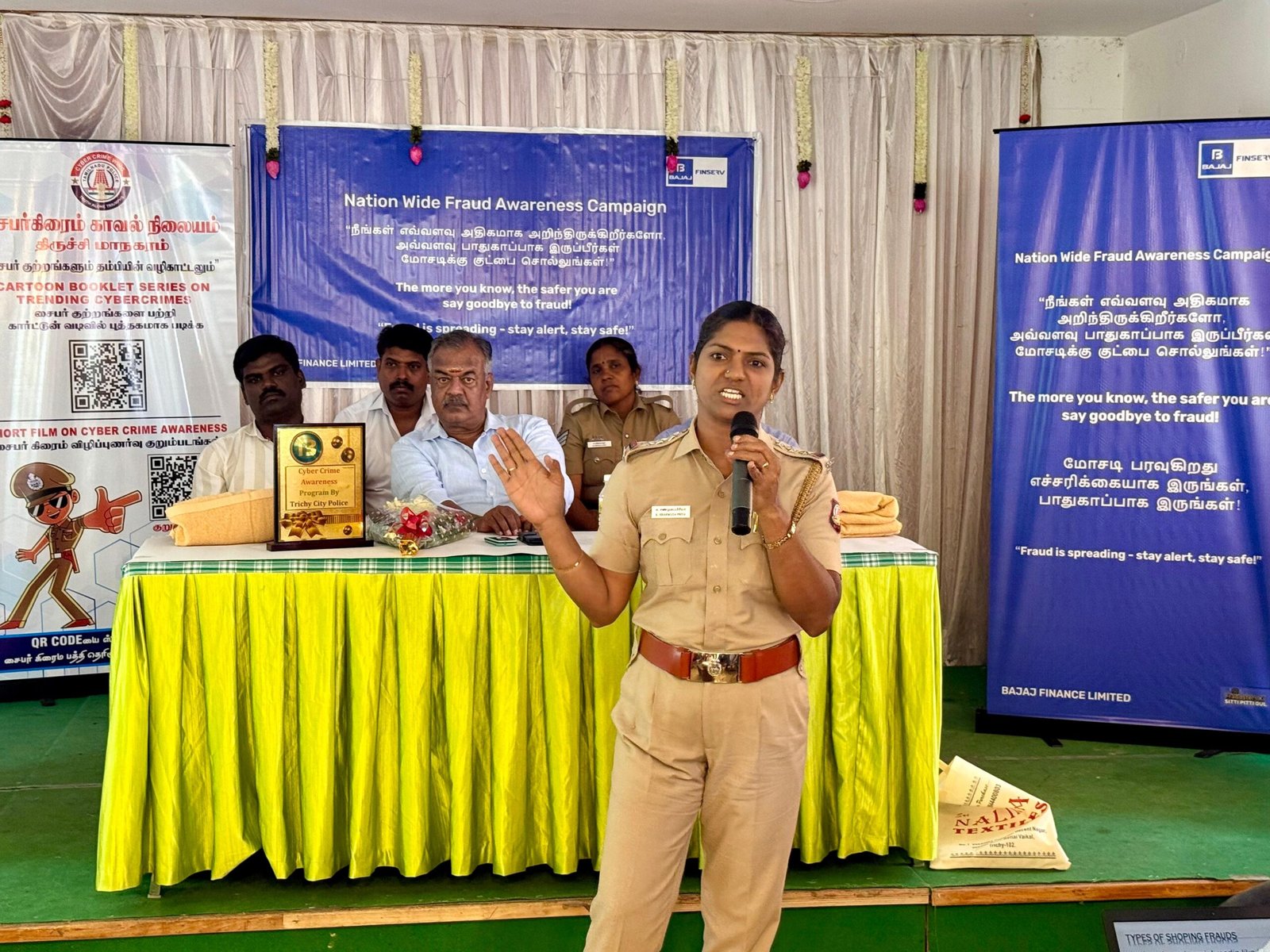 பஜாஜ் பைனான்ஸ் நிறுவனத்தின் டிஜிட்டல் மோசடியை தகர்ப்போம் என்னும் விழிப்புணர்வு பிரச்சார நிகழ்ச்சியில் திருச்சி நகர சைபர் கிரைம் காவல் ஆய்வாளர் கே .சண்முக பிரியா பேசிய போது கூறுகையில், திருச்சி மாநகரில் எங்களுக்கு வரும் பத்து காவல் புகார்களில் எட்டு, போலி அடையாள மோசடி மற்றும் ஏமாற்றும் வலைத்தளங்கள் மூலம் நிதி மோசடிகள் மற்றும் டிஜிட்டல் கைது அச்சுறுத்தல்கள் வரை சைபர் குற்றங்களுடன் தொடர்புடையவை உள்ளன என்று தெரிவித்தார்.