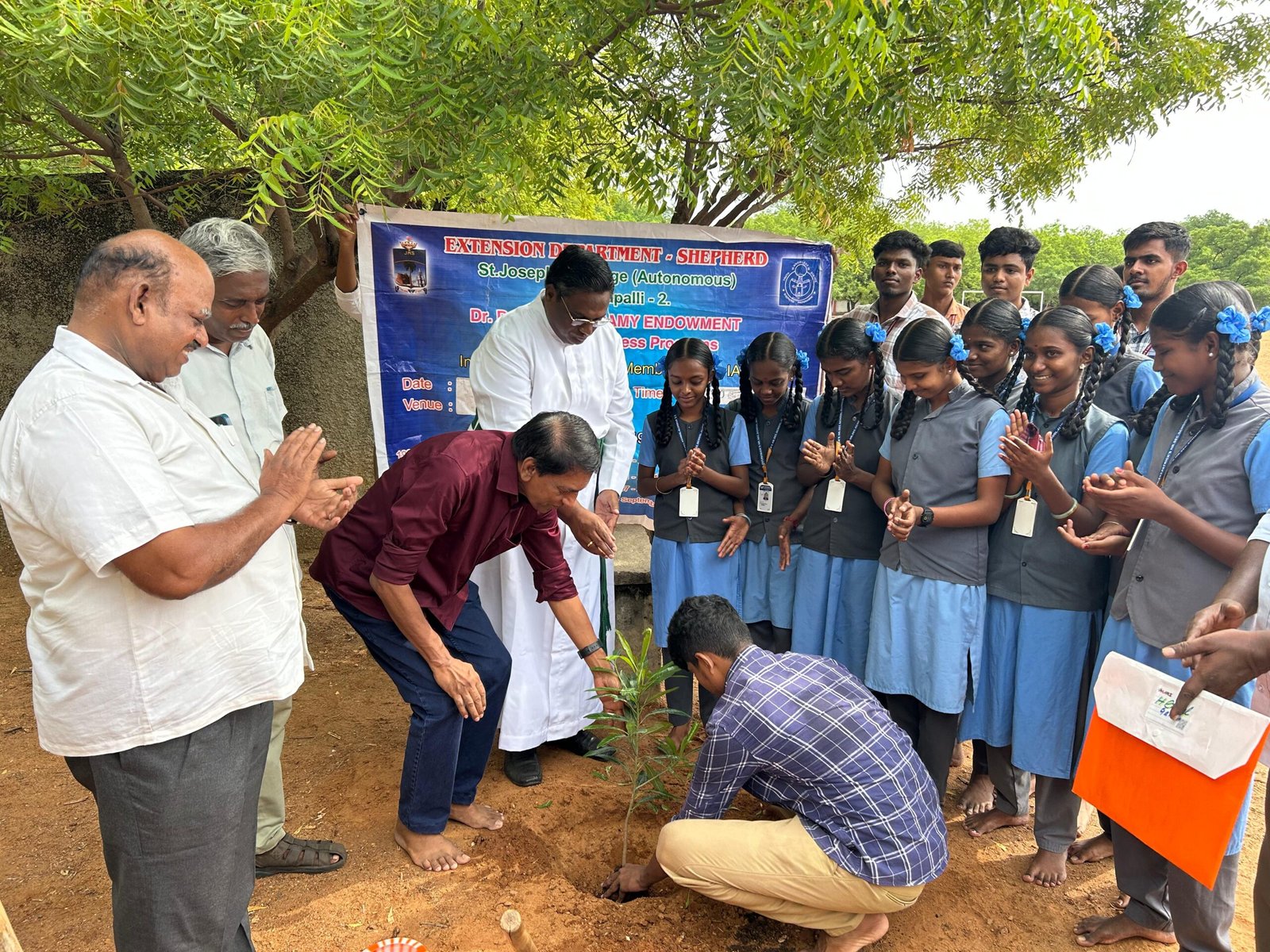 விரிவாக்கத்துறை இயக்குநர் அருள்முனைவர் சகாயராஜ் சே ச மாணவர்கள் தாங்கள் வீடுகளின் அருகில் மரக்கன்றுகளை நட்டு உங்கள் கிராமங்களை பசுமை கிராமமாக மாற்ற வேண்டும் என்று வாழ்த்துரை வழங்கினார்.