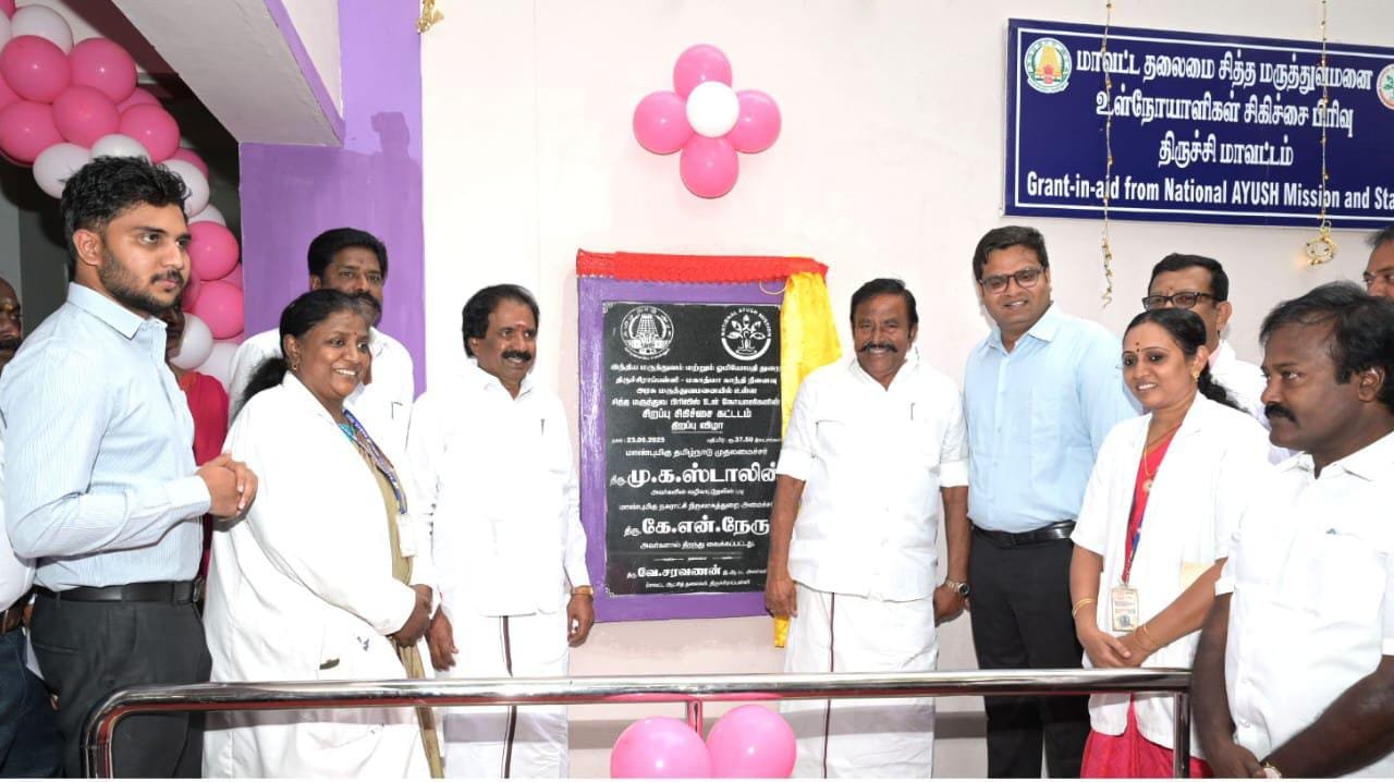 திருச்சி அரசு மருத்துவமனை வளாகத்தில் சித்த மருத்துவ பிரிவு சார்பில் கட்டப்பட்ட உள் நோயாளிகளுக்கான சிறப்பு சிகிச்சை கட்டிடத்தை அமைச்சர் கே என் நேரு தொடங்கி வைத்தார் .