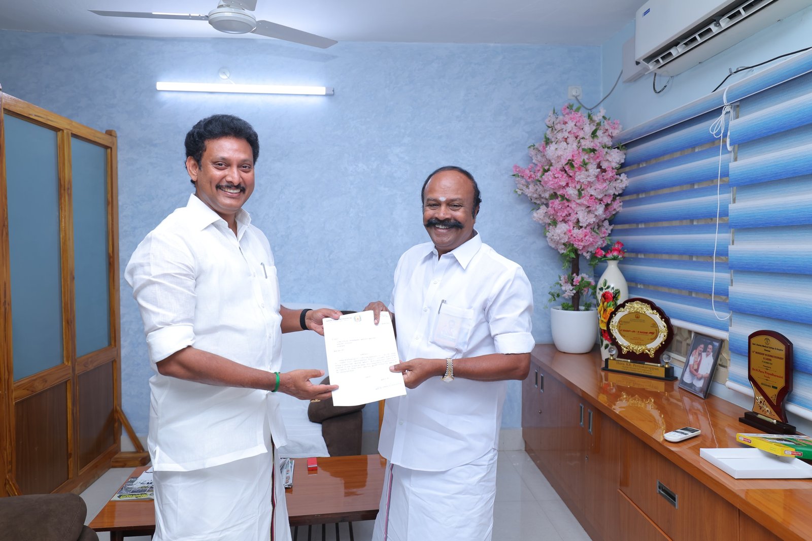 தனது தொகுதி பொதுமக்கள் நலன் கருதி கூட்டுறவு சங்கம் அமைக்க கோரி அமைச்சர் பெரியகருப்பனிடம் அமைச்சர் அன்பில் மகேஷ் பொய்யாமொழி கோரிக்கை.