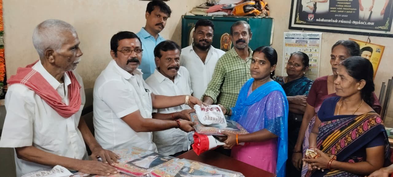 துப்புரவு பணியாளர்கள் மற்றும் மகளிர் அணியினருக்கு தீபாவளி பரிசுடன் வாழ்த்து தெரிவித்த திமுக வட்டசெயலாளர் செந்தில்குமார்.