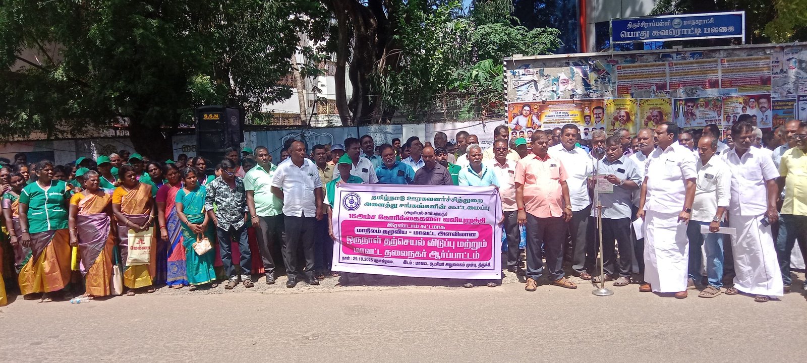 16 அம்ச கோரிக்கைகளை வலியுறுத்தி திருச்சியில் தமிழ்நாடு ஊரக வளர்ச்சி துறை அனைத்து சங்கங்களின் கூட்டமைப்பினர் ஆர்ப்பாட்டம். அடுத்த கட்டப் போராட்டம் அறிவிப்பு