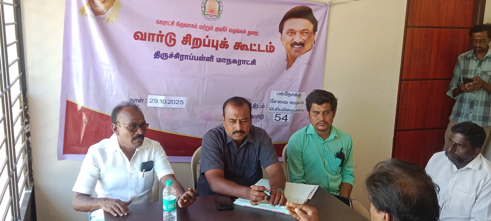 திருச்சி மாநகராட்சி 65வார்டு பகுதிகளிலும் வார்டு சிறப்பு கூட்டம் இன்று புதன்கிழமை நடைபெற்றது.
