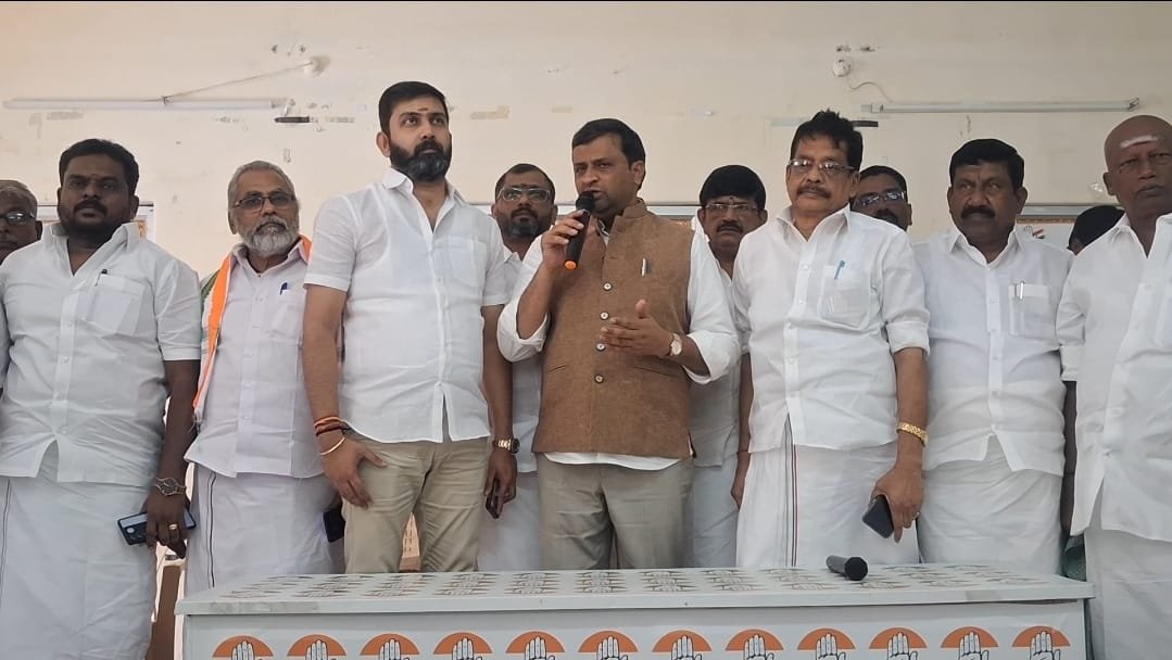 தமிழகத்தில் ஆட்சியில் பங்கு குறித்து திருச்சியில் அகில இந்திய காங்கிரஸ் கமிட்டி பார்வையாளர் சாஹிர் சனதி பரபரப்பு பேட்டி.