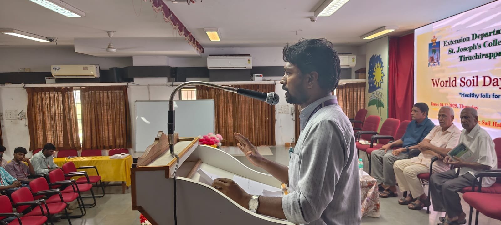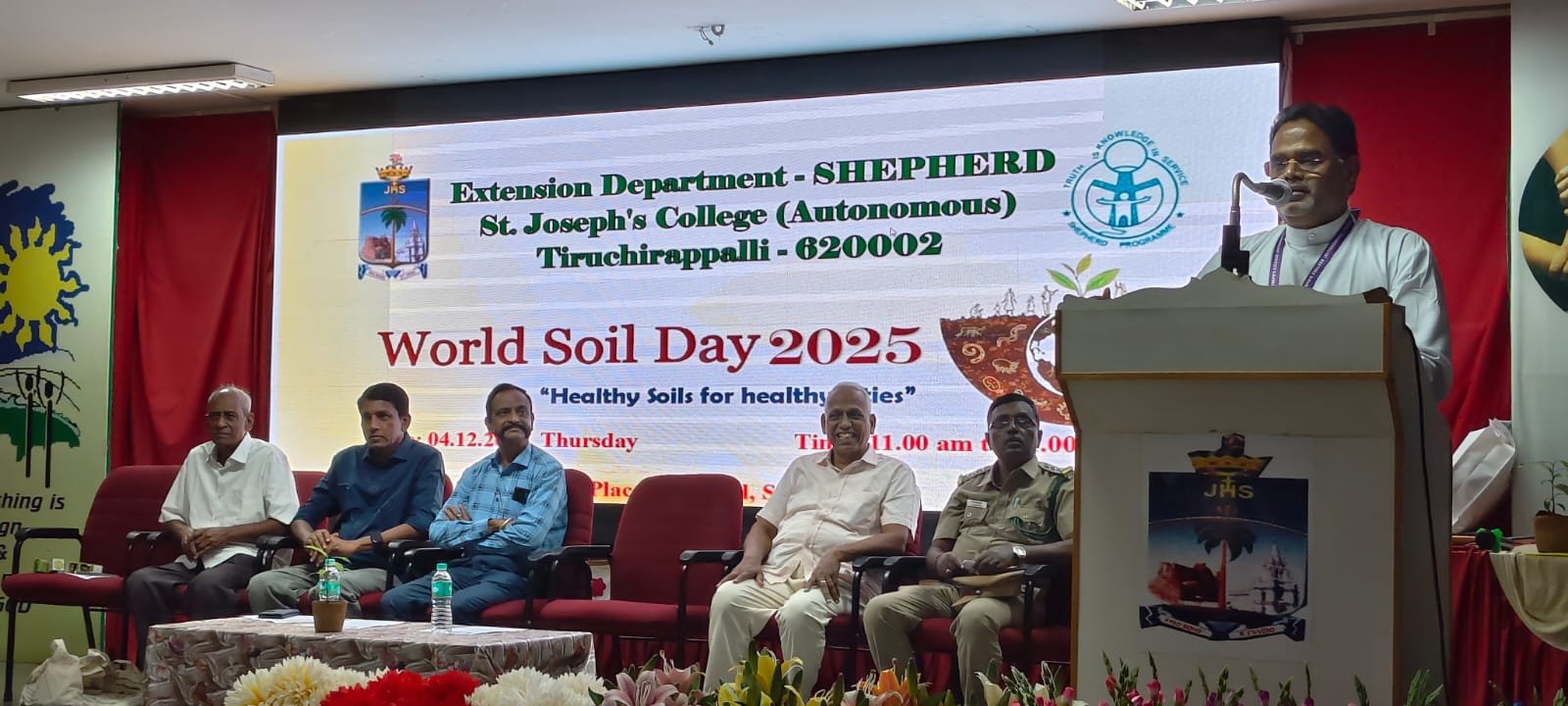 திருச்சி செயின்ட் ஜோசப் தன்னாட்சி கல்லூரியின் விரிவாக்கத்துறை செப்பர்டு சார்பாக உலக மண் தின விழிப்புணர்வு கருத்தரங்கு கல்லூரி செயில் அரங்கில் நடைபெற்றது .