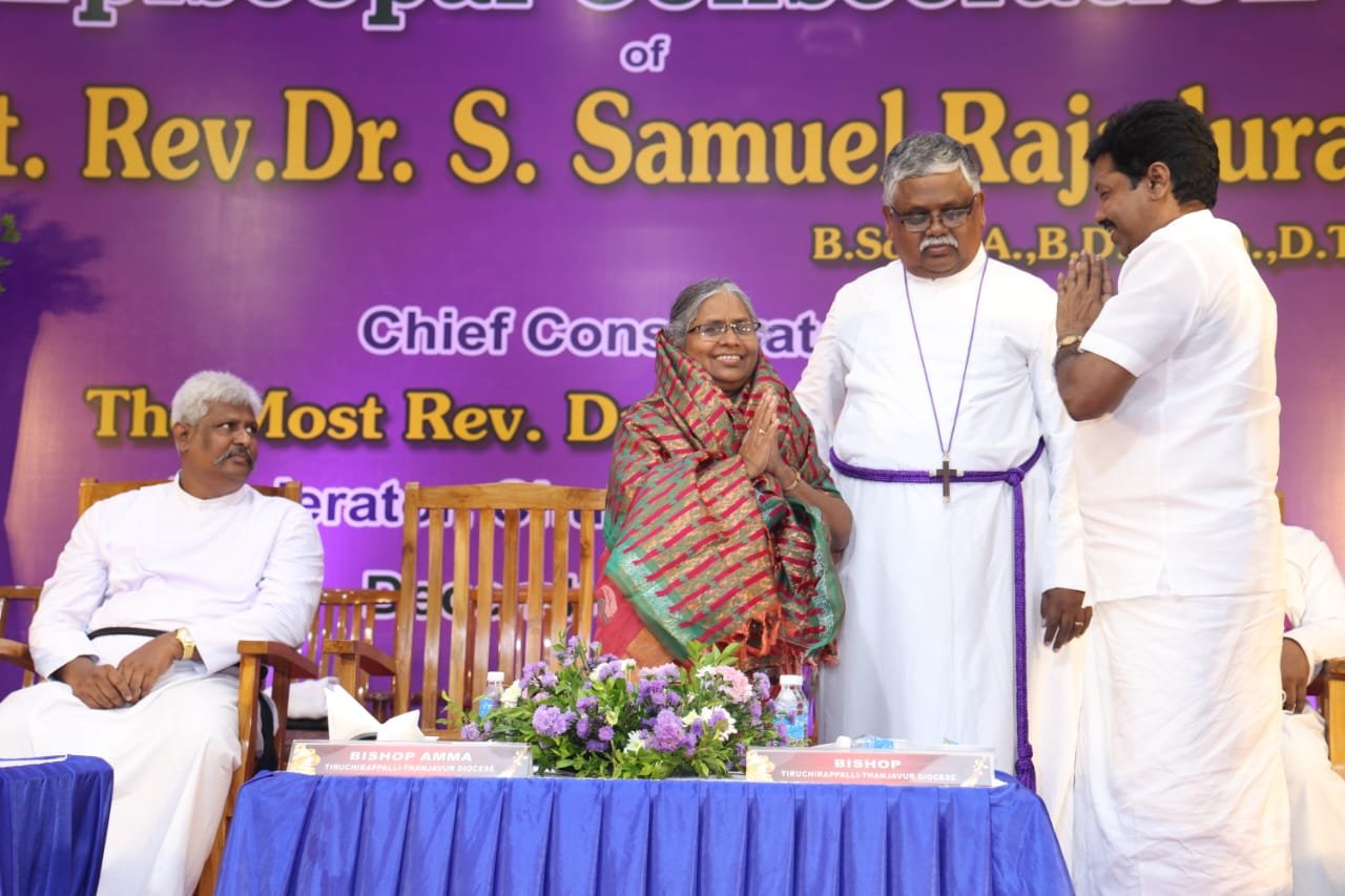 முன்னதாக நேற்று திருச்சி தஞ்சை திருமண்டலத்தின் 7வது பேராயராக தேர்ந்தெடுக்கப்பட்ட முனைவர் சாமுவேல் ராஜதுரை அவர்களின் பாராட்டு விழாவில் கலந்து கொண்டு சிறப்பித்தார். இந்த நிகழ்வில் துறையூர் பகுதி அவைத்தலைவர் வெஸ்லி , வட்ட செயலாளர் செல்லப்பா , அண்ணா தொழிற்சங்க இணை செயலாளர் ஆசைத்தம்பி உள்ளிட்ட பலர் கலந்து கொண்டனர்.