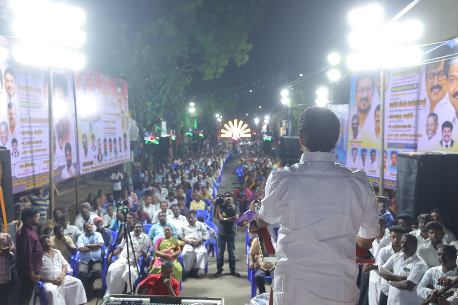 மேலும் இந்த பொதுக்கூட்டத்தில் தமிழக பள்ளி கல்வித்துறை அமைச்சர் அன்பில் மகேஷ் பொய்யாமொழி உரையாற்றியதாவது நமது தொகுதியில் கிறிஸ்துமஸ் விழா உட்பட பல்வேறு நிகழ்ச்சிகளில் நான் கலந்து கொண்டு வந்துள்ளதாகவும் மேலும் இந்த தொகுதியின் உடைய சட்டமன்ற உறுப்பினராக காட்டூர் பகுதியான வாடு 36, 37, 38 ,43 வார்டுகளில் என 2021 முதல் 2026 வரை சாலை அமைத்தால் நியாய விலை கடை கட்டுதல் ஆரம்ப சுகாதார நிலையம் அமைத்தால் மாமன்ற உறுப்பினர் அலுவலகம் கட்டுதல் புதிய கழிப்பிடம் கட்டுதல் தெருவிளக்கு அமைத்தல் என 67.82 கோடி மதிப்பீட்டில் பணிகள் செய்து முடிக்கப்பட்டு மக்கள் பயன்பாட்டிற்கு கொண்டு வரப்பட்டு உள்ளதாகவும் நான் முதன் முதலில் 2016ல் திருவரம்பூர் தொகுதியில் போட்டியிட்ட பொழுது நான் என் மனதில் ஏற்றிக்கொண்டது ஒன்றே ஒன்றுதான் திருச்சி எனது சொந்த ஊர் திருவரம்பூர் எனது சொந்த வீடு என்பது மட்டும் தான் என்றார் மேலும் இன்று நம்முடைய ஒவ்வொரு வாக்கும் எவ்வளவு முக்கியம் என்றால் நீங்கள் அளித்த ஒரு வாக்கினால் தான் இன்று தமிழகம் முழுவதும் 20 லட்சம் அரசு பள்ளி மாணவ மாணவிகள் பசியில்லாமல் காலை உணவு உட்கொண்டு பள்ளிக்குச் சென்று கல்வி பயின்றுவருவதாகவும். எனவே உங்கள் ஓட்டு மதிப்பு என்பது மகளிர் விடியல் பேருந்து மூலம் பயணம் இன்று ஆய்வு அறிக்கையின் மூலம் மகளிர் ஐம்பதாயிரம் ரூபாய் சேமித்து வருவதாகவும், புதுமைப் பெண் மற்றும் தமிழ் புதல்வன் திட்டங்கள் மூலம்