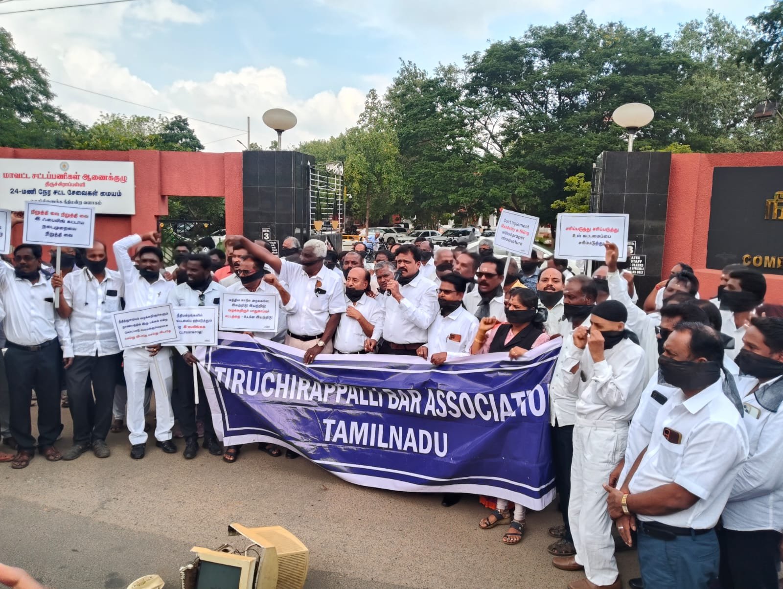 திருச்சிராப்பள்ளி வழக்கறிஞர்கள் சங்க செயலாளர் சி. முத்துமாரி தலைமை தாங்கி பேசினார்.
