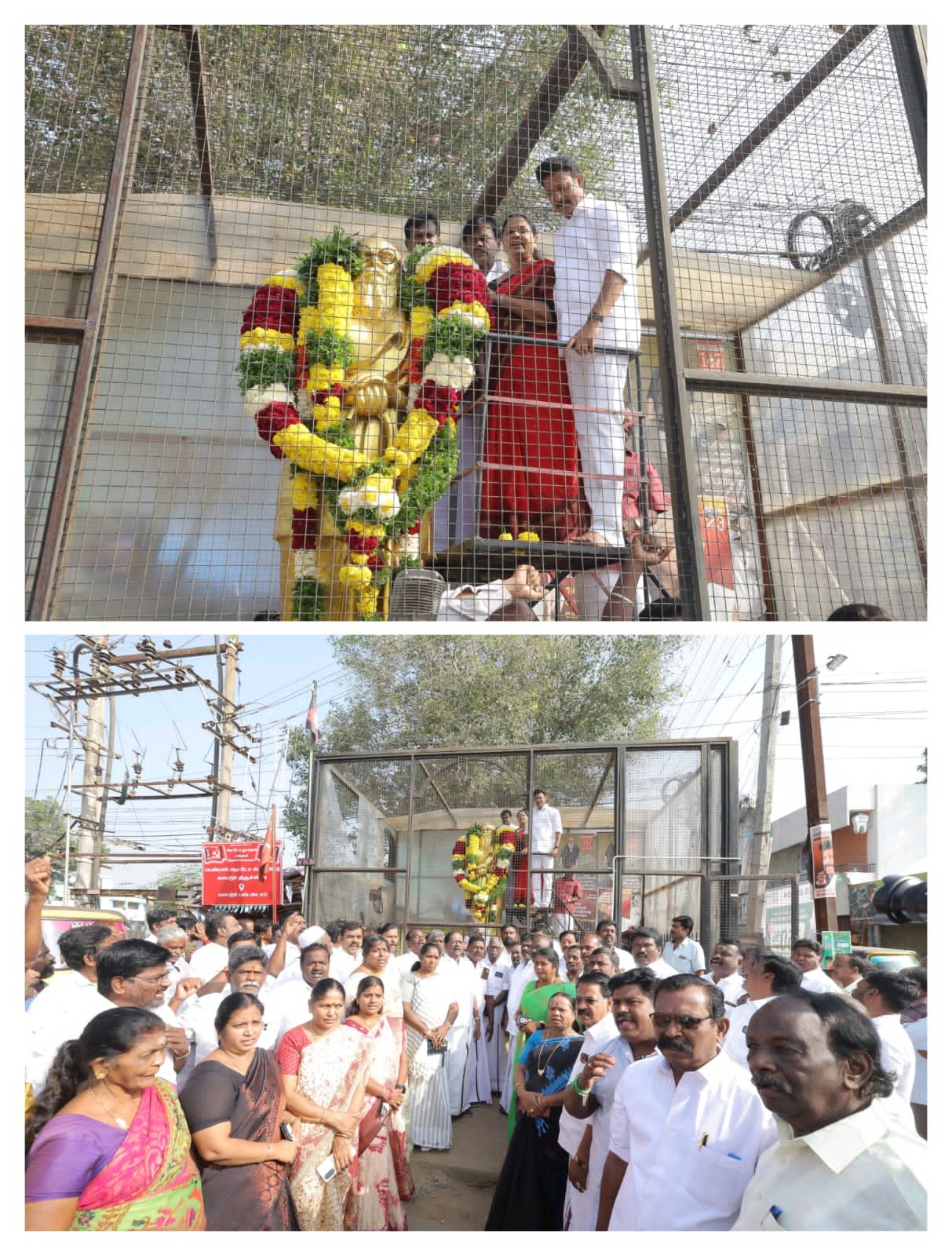 திருச்சி தெற்கு மாவட்ட செயலாளரும் பள்ளிக் கல்வித்துறை அமைச்சருமான முனைவர் அன்பில் மகேஸ் பொய்யாமொழி தலைமையில் மாலை அணிவித்து மரியாதை செலுத்தப்பட்டது.