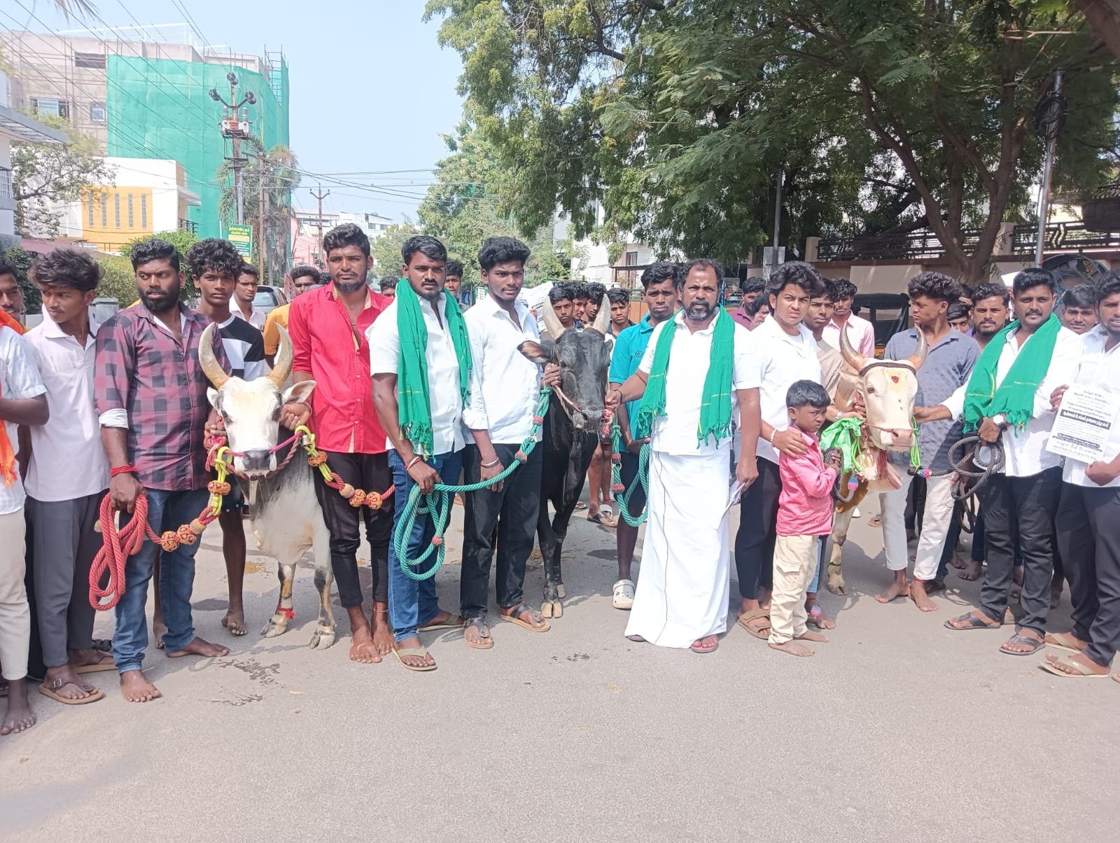 அப்போது ஜல்லிக்கட்டு போட்டியில் ஆன்லைன் மூலம் டோக்கன் பெறும் முறையை தவிர்க்ககோரி ஜல்லிக்கட்டு காளைகளுடன் சமூக நீதிப் பேரவை தலைவர் ரவிக்குமார் தலைமையில் வந்த பொதுமக்கள் கலெக்டரை சந்தித்து மனு அளித்தனர்.அந்த மனுவில் கூறியிருப்பதாவது:-