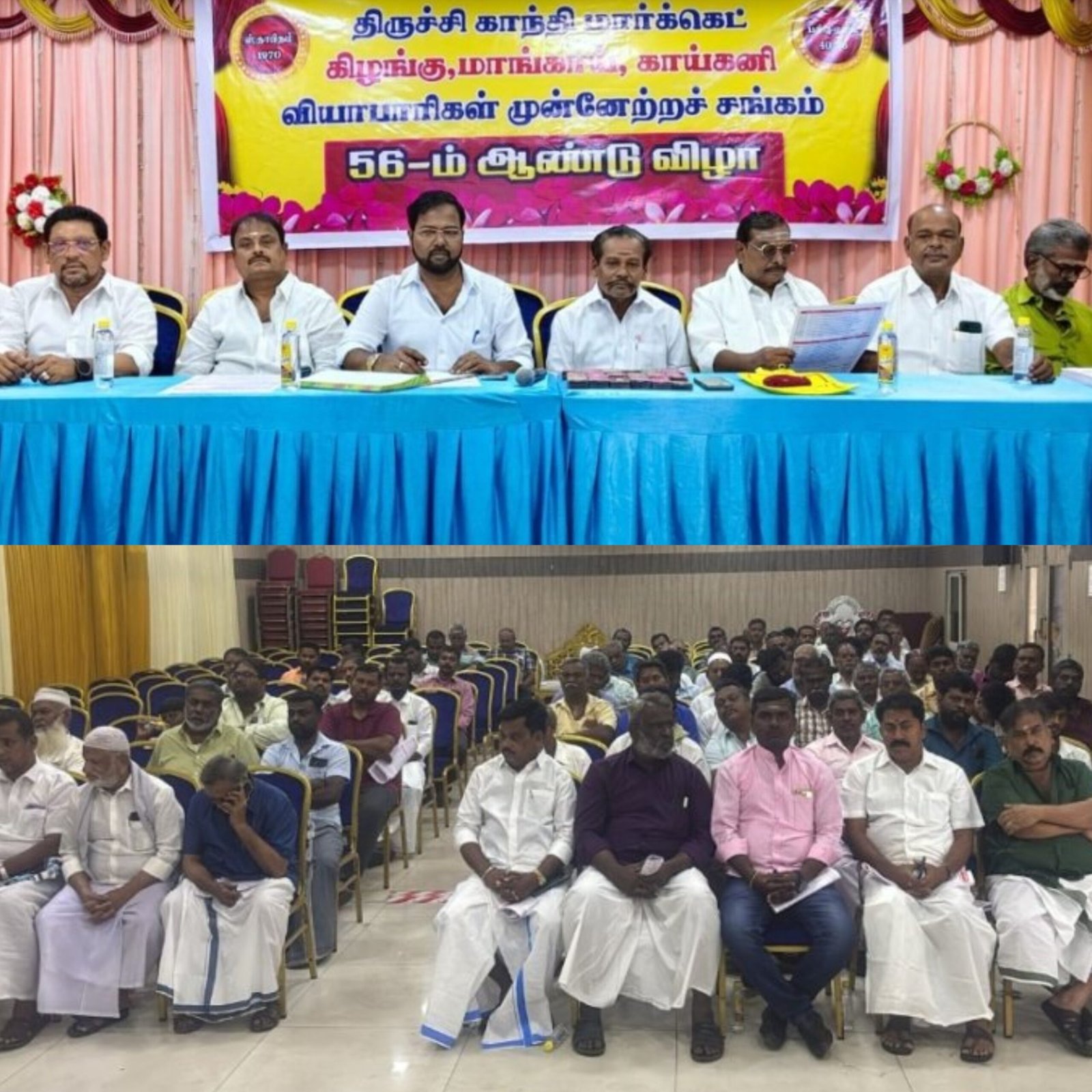 திருச்சி காந்தி மார்க்கெட் கிழங்கு, மாங்காய், காய்கனி வியாபாரிகள் முன்னேற்ற சங்கத்தின் 56-வது ஆண்டு விழா இன்று நடைபெற்றது.