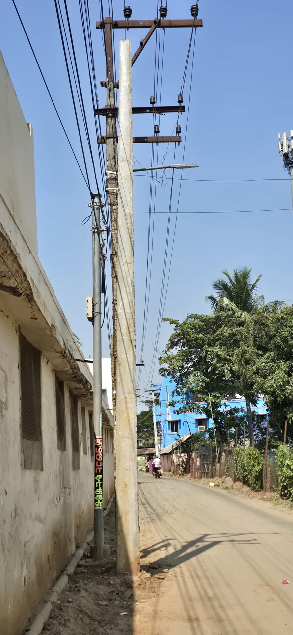 மின்கம்பம் ஒட்டி அமைந்துள்ளது தனியார் பள்ளி கட்டிடமும், பொது மக்கள் அதிகம் நடமாடும் இடத்தில் இந்த மின் கம்பம் உள்ளது. மக்கள் அதிக நடமாட்டம் உள்ள இப்பகுதி என்பதால் மின்கம்பத்தை உடனடியாக மாற்றியமைத்து தருமாறு கேட்ட பிறகு புதிய மின்கம்பம் நட்டு ஒரு மாதம் மேல் ஆகியும், மின்கம்பிய மாற்றாமல் அப்படியே விட்டு விட்டார்கள் மின்சார வாரிய அதிகாரிகள்.
