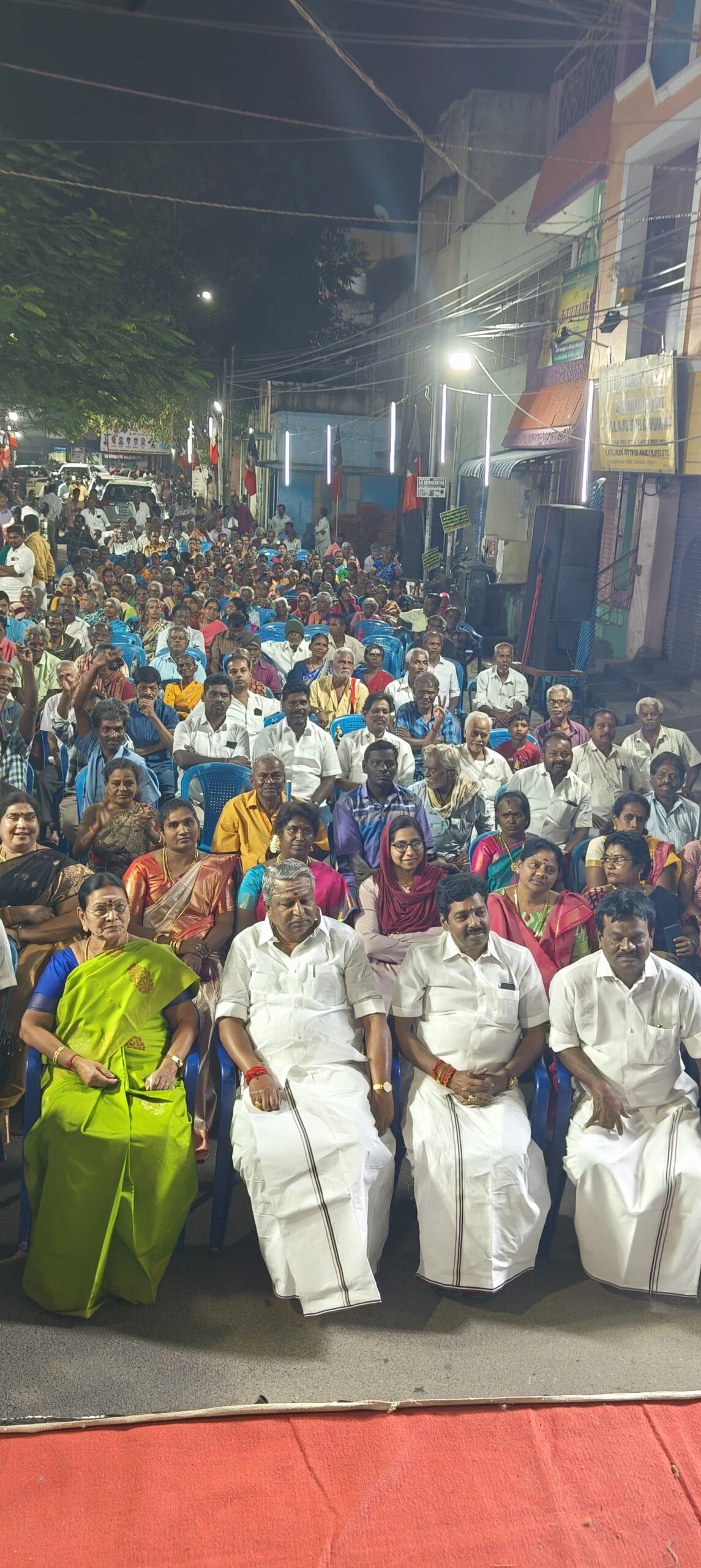 சரிந்த மேடையில் நிகழ்ச்சி சுமார் 2 மணி நேரத்திற்கும் மேலாக எந்தவித பிரச்சனையும் இன்றிஅமைதியாக நடைபெற்றது.