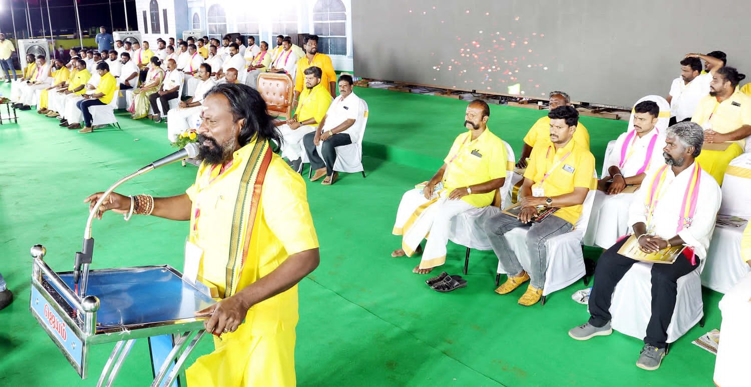 தமிழர் தேசம் கட்சியின் மூன்றாவது மாநில மாநாடு திருச்சி திண்டுக்கல் நெடுஞ்சாலை ஆலம்பட்டி புதூரில் நேற்று மாலை நடைபெற்றது. இதில் தமிழகம் முழுவதும் இருந்து லட்சக்கணக்கான , நிர்வாகிகள் தொண்டர்கள் கலந்து கொண்டனர்.