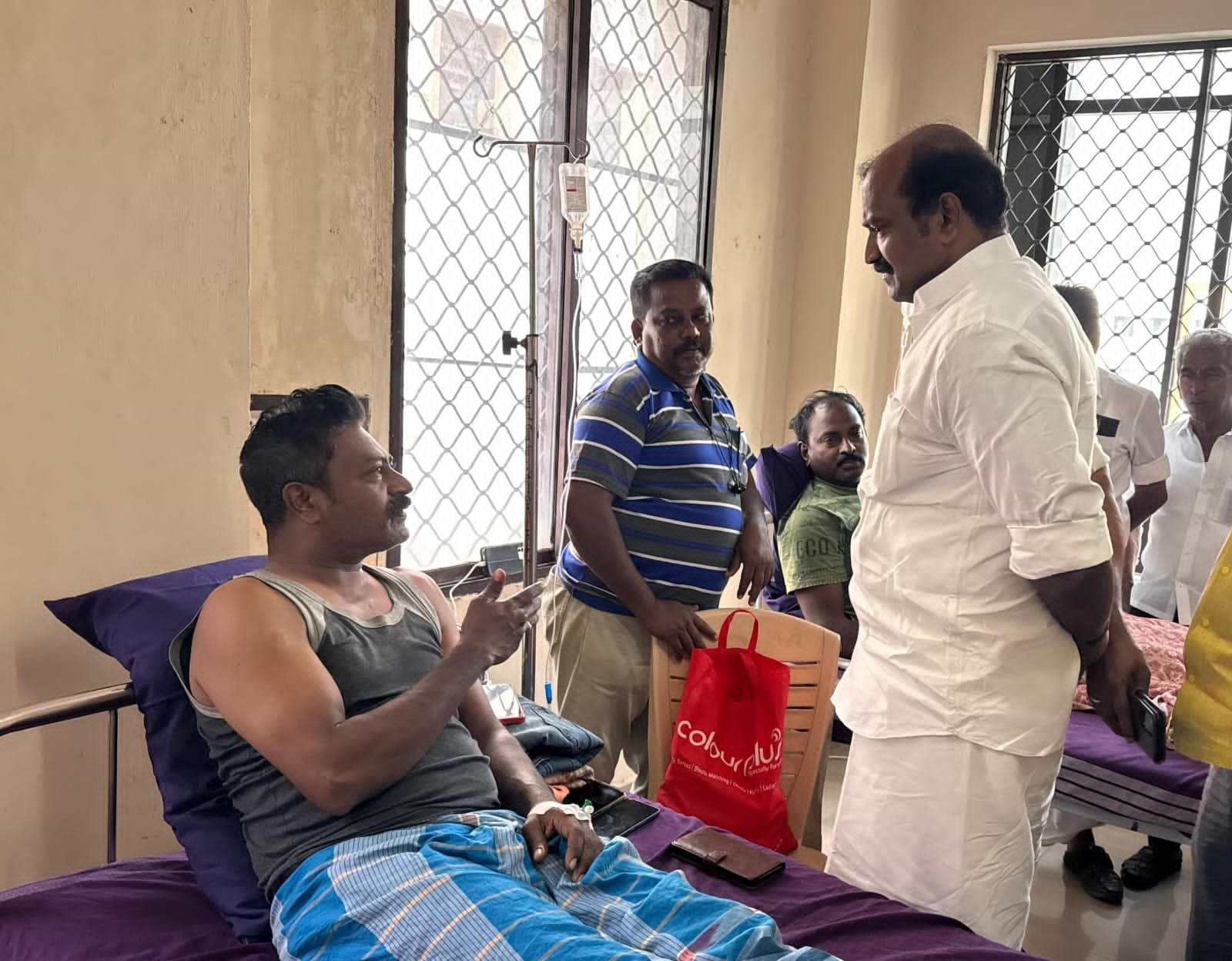 பாதிக்கப்பட்ட பத்திரிகையாளர்களை, திருச்சி தெற்கு மாவட்ட செயலாளரும் முன்னாள் மாமன்ற உறுப்பினருமான ப.செந்தில்நாதன் மற்றும் மாவட்ட துணை செயலாளர் தன்சிங், தில்லைநகர் பகுதி செயலாளர் கருப்பையா, கல்நாயக் சதீஷ்குமார், நிர்வாகிகள் அகிலாண்டேஸ்வரி, சேது கார்த்தி, ராஜா மணிகண்டன், கருணாநிதி, கைலாஷ் ராகவேந்திரா ஆகியோர் நேரில் சென்று சந்தித்து ஆறுதல் கூறினார்.