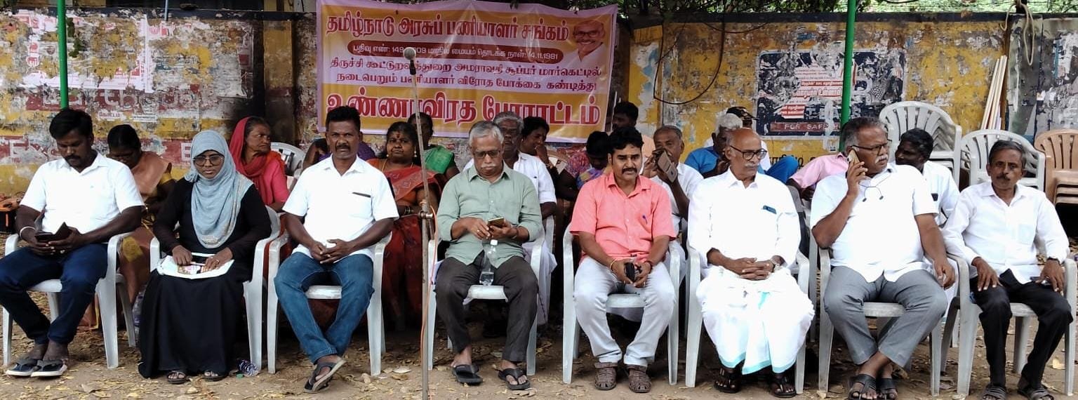 அமராவதி கூட்டுறவு சூப்பர் மார்க்கெட் நிர்வாகத்தை கண்டித்து தமிழ்நாடு அரசு பணியாளர்கள் ஊழியர் சங்கத்தினர் திருச்சியில் உண்ணாவிரத போராட்டம்