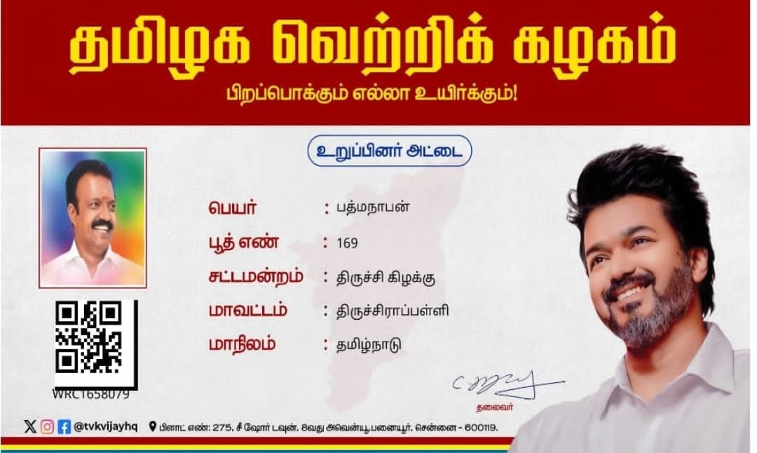 தற்போது தமிழக வெற்றி கழக தலைவர் விஜய் திருச்சி கிழக்குத் தொகுதியில் போட்டியிட ரூ.பத்தாயிரம் பணம் கட்டி விருப்ப மனு அளித்துள்ளார்.