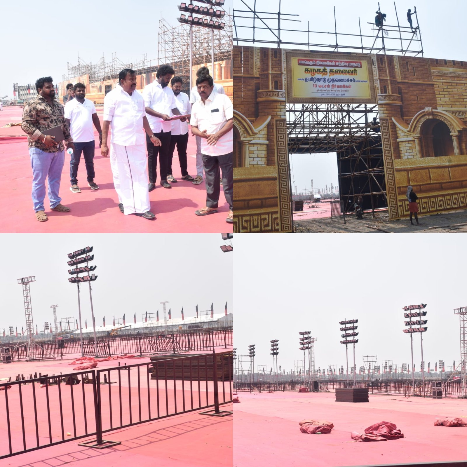 தொடர்ந்து அமைச்சர் கே.என்.நேரு மாநாட்டு பணிகளை பார்வையிட்டு,நிர்வாகிகளுடன் ஆலோசனை நடத்தி அறிவுரைகளை வழங்கினார்.