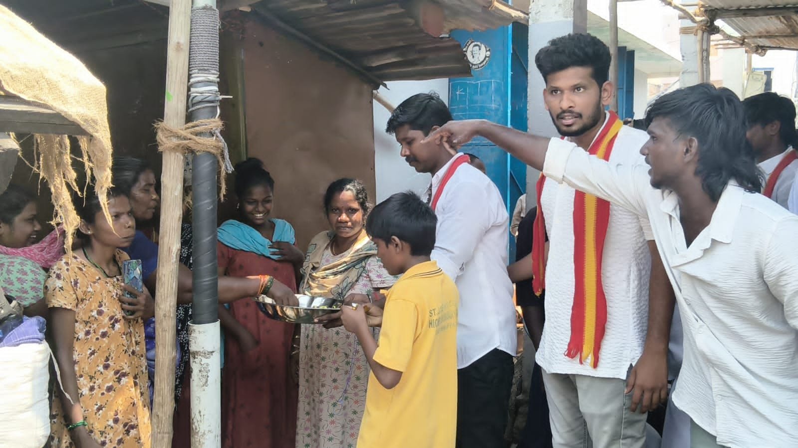 தமிழக வெற்றிக் கழகத்தின் திருச்சி மாவட்டப் பொறுப்பாளர் குடமுருட்டி கரிகாலனின் ஆலோசனையின்படி, மலைக்கோட்டை பகுதி இணைச் செயலாளர் ராக்போர்ட் ராஜேஷ் தலைமையில் சிறப்பான ஏற்பாடுகள் செய்யப்பட்டிருந்தன. வட்டச் செயலாளர் வெங்கடேசன் முன்னிலையில் நடைபெற்ற இந்த நிகழ்வில், தொண்டர்கள் திரளாகக் கூடி பட்டாசுகள் வெடித்தும், பொதுமக்களுக்கு இனிப்புகள் வழங்கியும் தங்களது மகிழ்ச்சியைப் பகிர்ந்து கொண்டனர்.